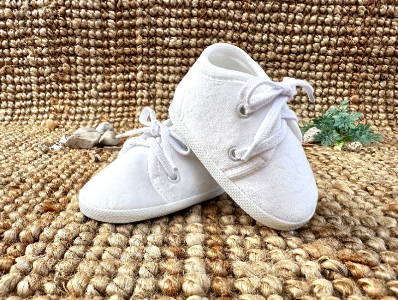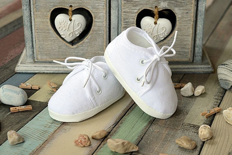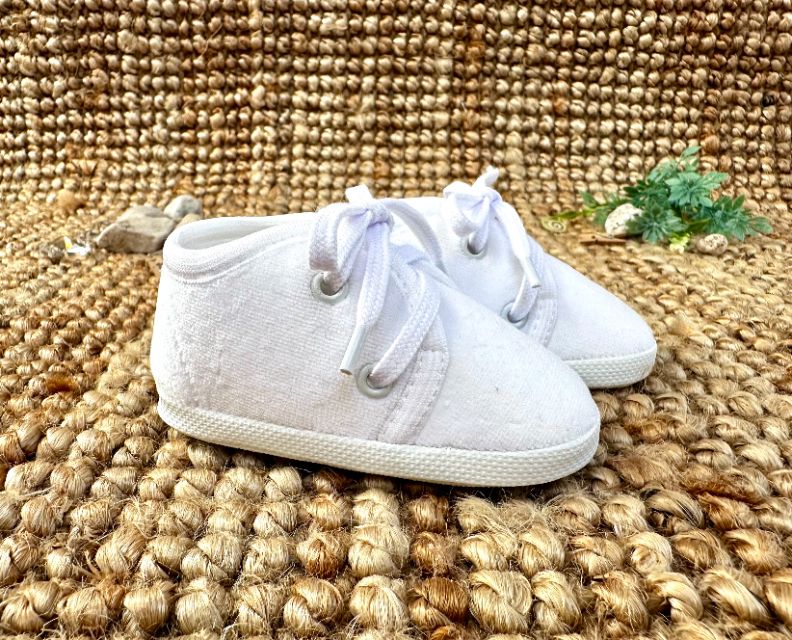 Sznurowane, klasyczne buciki z białego weluru