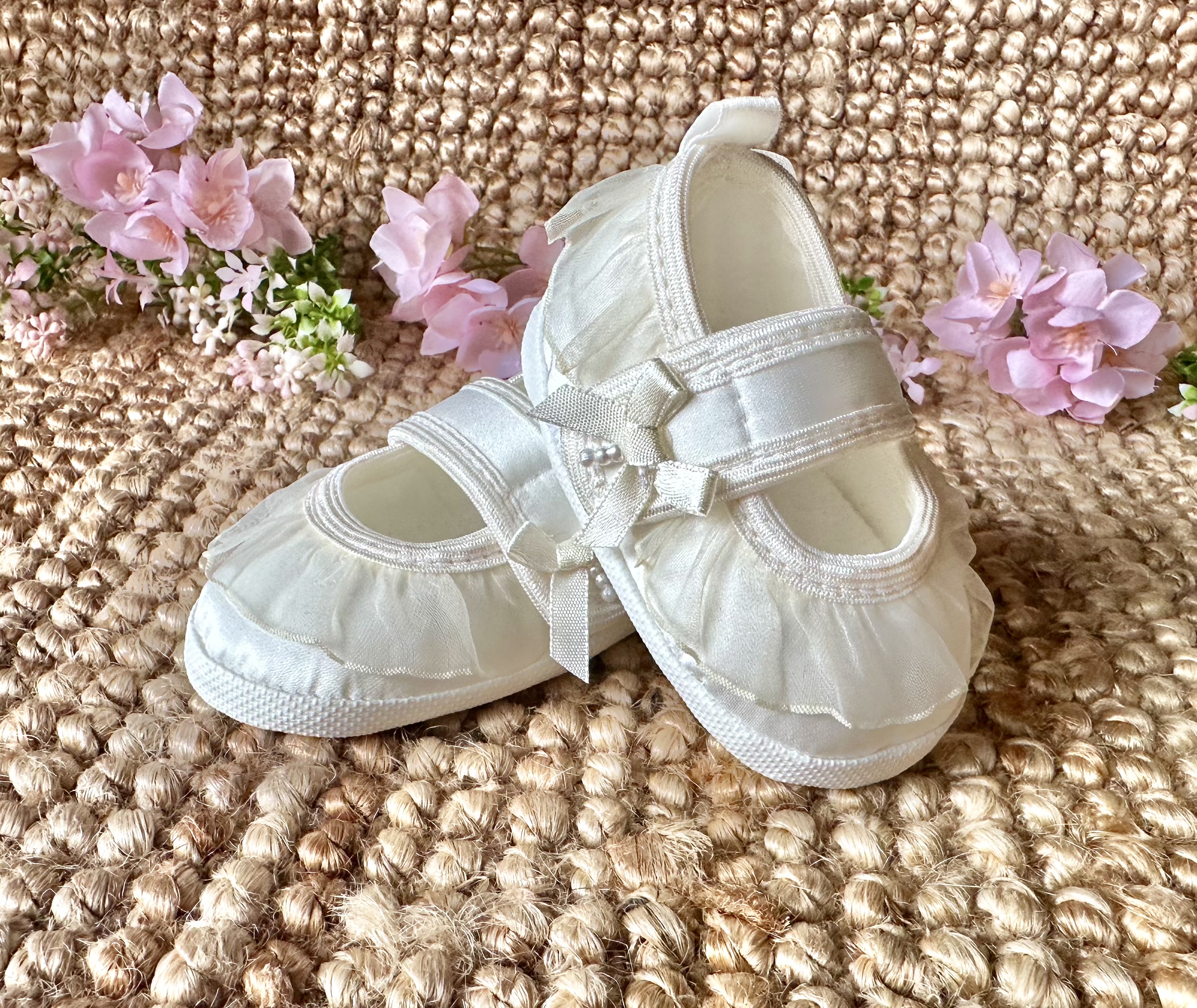 Atłasowe buciki na rzep - M008SB Zapinane na rzep, eleganckie buciki z atłasu. Tk.zew.- satyna (polyester) tk.wew.- włóknina obuwnicza (polyester) spód- cortina (PVC Ftalan free) rozmiary: 10,11,12,13 - długość wkładki w cm. wewnątrz Galeria