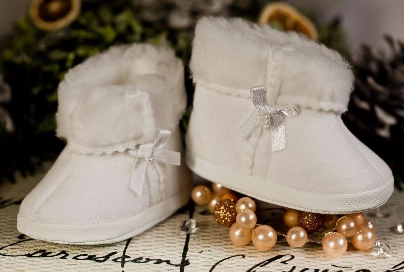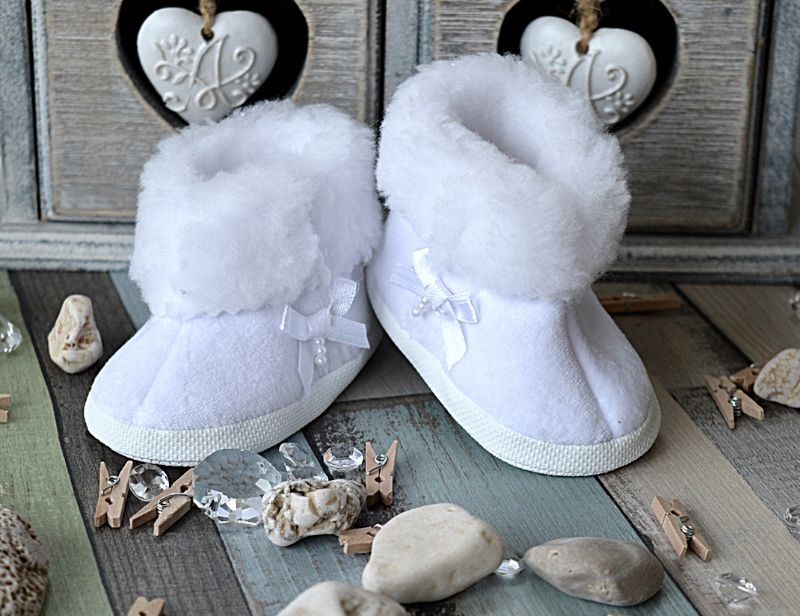 Kozaczki Welur biały Welurowe kozaczki zapinane na rzep (z kokardką lub bez).Tk.zew.-welurtk.wew.-dzianina runowa "miś"spód- cortina rozmiary: 10,11,12 - długość wkładki w cm. wewnątrz Galeria