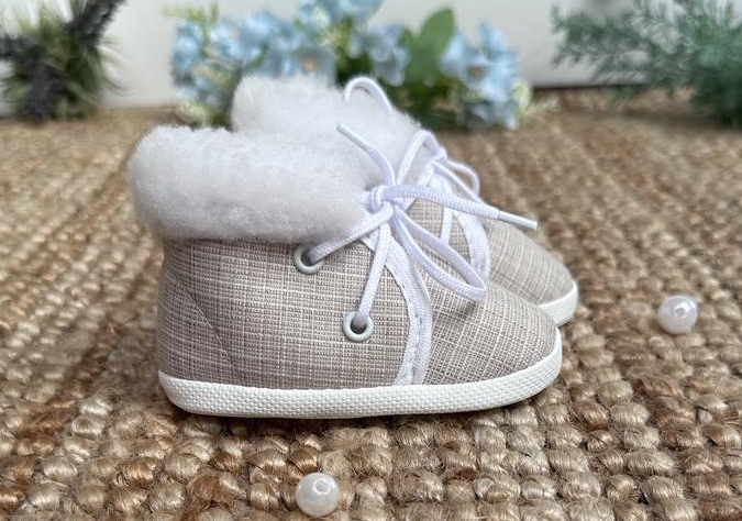 M015 JB beżowe Sznurowane, klasyczne buciki z beżowego lnu.Tk.zew.- beżowa tkanina z obszyciem z dzianiny runowejtk.wew.- włóknina obuwniczaspód- cortina romiary: 10,11,12,13- długość wkładki w cm. wewnątrz Galeria