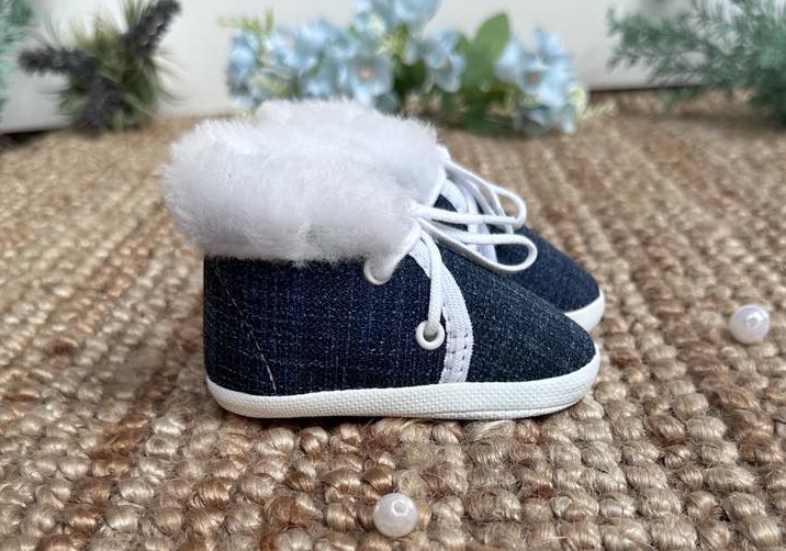 M015 JG granatowe Sznurowane, klasyczne buciki z granatowego jeansu.Tk.zew.-granatowa tkanina z obszyciem z futerkatk.wew.- włóknina obuwniczaspód- cortina romiary: 10,11,12,13- długość wkładki w cm. wewnątrz Galeria