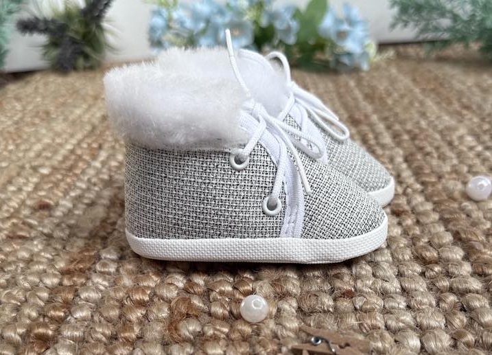 M015 JS Szare Sznurowane, klasyczne buciki z szarej tkaniny .Tk.zew.- szara tkanina z obszyciem futerkowymtk.wew.- włóknina obuwniczaspód- cortina romiary: 10,11,12,13- długość wkładki w cm. wewnątrz Galeria