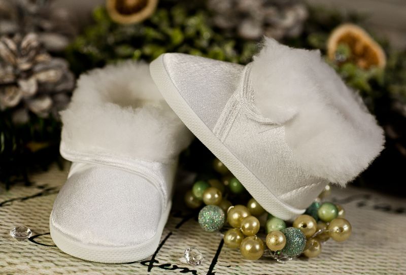 M008 S-B Zima - Satynowe buciki na rzep Zapinane na rzep, eleganckie buciki z białej satyny.Tk.zew.-satyna z obszyciem futerkowymtk.wew.- włóknina obuwniczaspód- cortina rozmiary: 10,11,12,13 - długość wkładki w cm. wewnątrz Galeria
