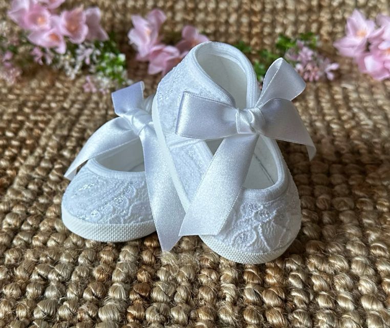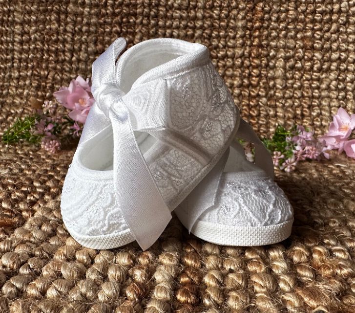 Balerinka koronkowa z szarfą BIAŁA - 105KB - NOWOŚĆ Szykowne buciki z białej koronki , sznurowane satynową szarfą. tk.zew.- koronka (polyester)tk.wew.- włóknina obuwnicza (polyester)spód- cortina (PVC Ftalan free) rozmiary: 9,10,11,12,13 Galeria