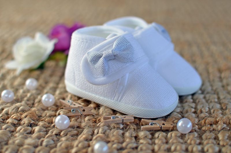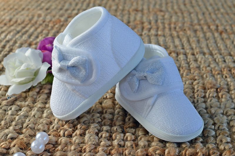 Białe, przepiękne, lniane Trzewiki do chrztu, zapinane na rzep, z wszytą antypoślizgową wyprofilowaną stopką. Ozdobione biało-srebrną kokardą.