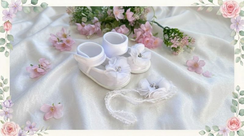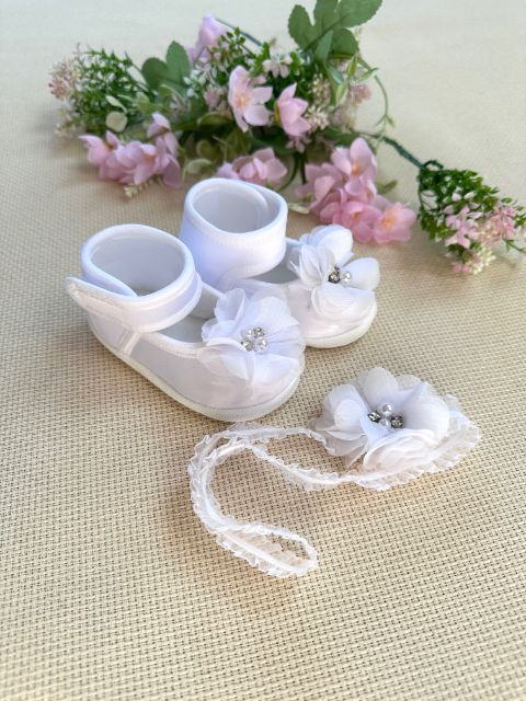 Buciki + Opaska Kwiat biały