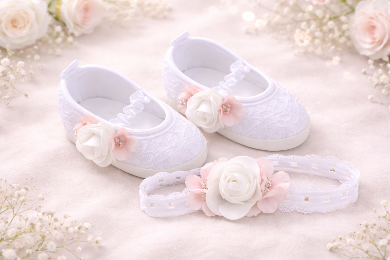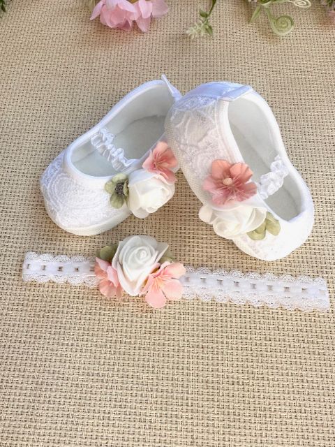 Buciki + Opaska Różany bukiecik Biały - NOWOŚĆ