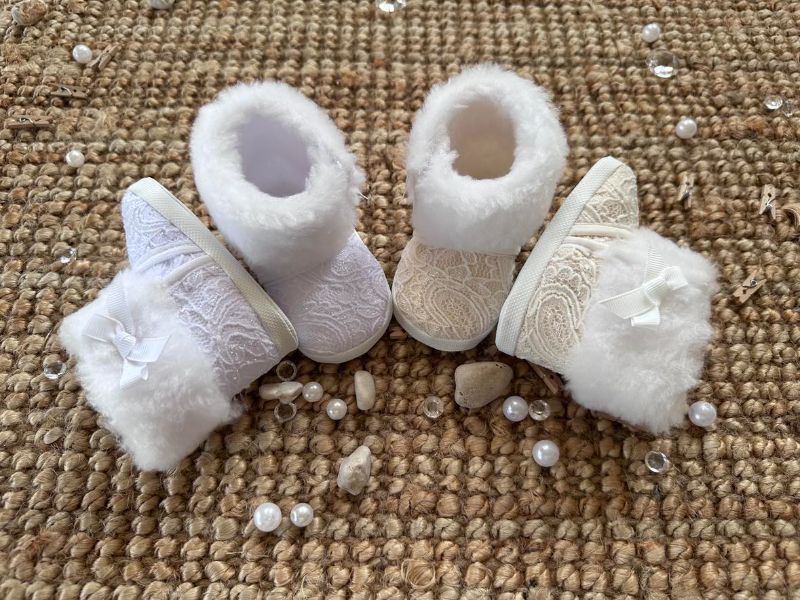 Kozaczki new KB - NOWOŚĆ Koronkowo-futerkowe, cieplutkie kozaczki zapinane na rzep, z ozdobną rypsową kokardką na cholewce bucika .Tk.zew.- koronkatk.wew.-dzianina runowa "miś"spód- cortina rozmiary:10,11,12 (długość wkładki w cm.) Galeria