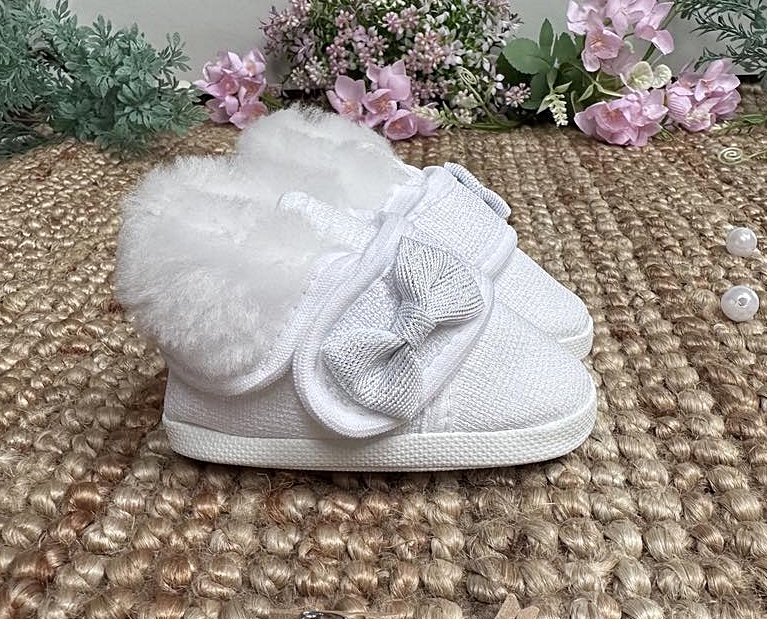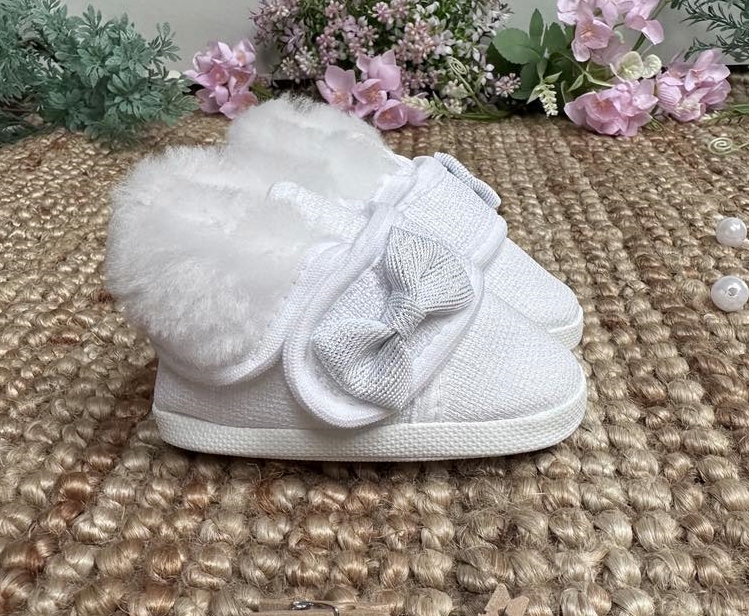 M024 L-B Trzewiki zimowe ze srebrną kokardą - NOWOŚĆ